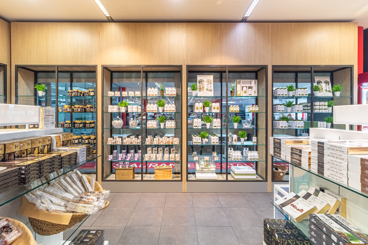 Dans la zone de restauration, une large gamme de produits est proposée, y compris des menus spéciaux pour les personnes souffrant d’intolérances alimentaires et des options saines. À l’intérieur de la boutique, vous trouverez des cadeaux, des produits artisanaux, des souvenirs, des produits locaux et bien plus encore.