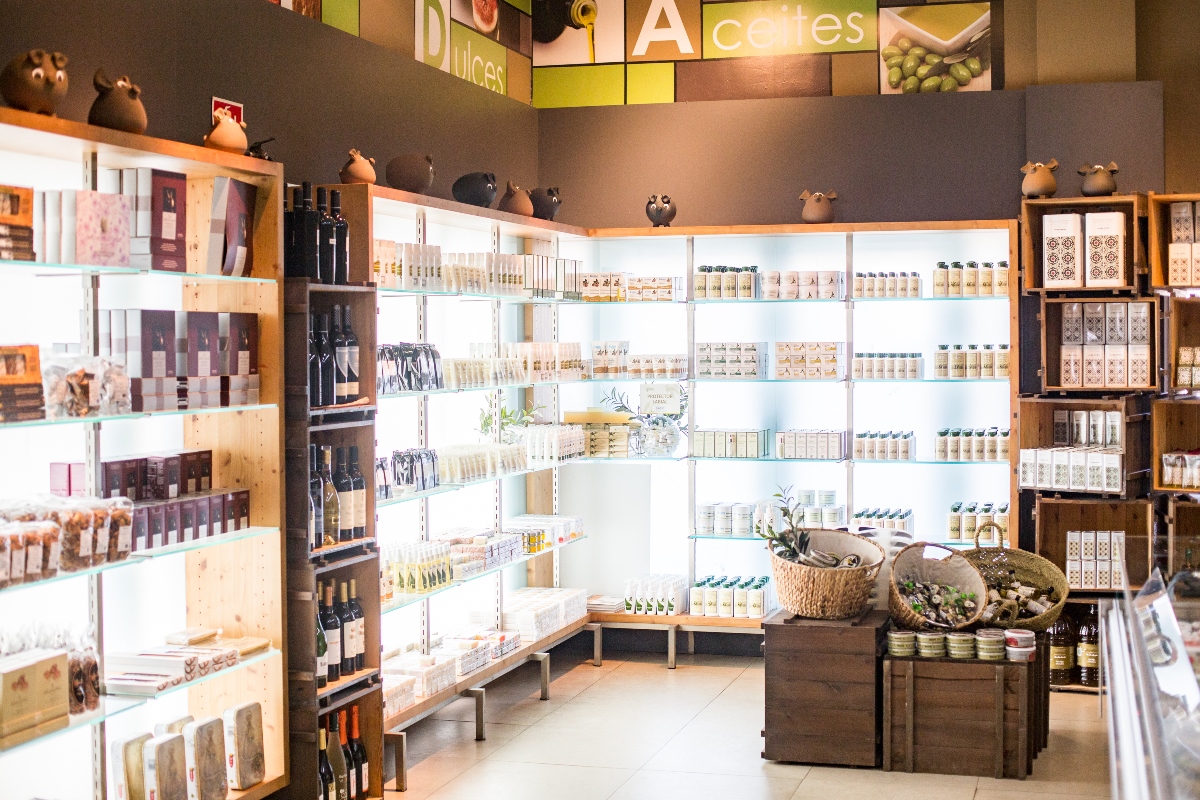 À l’intérieur, une boutique multiproduits propose les produits les plus typiques de la région. Vous y trouverez la meilleure sélection gastronomique locale, avec des spécialités ibériques (jambons, longes, saucissons, etc.), ainsi qu’un choix soigné de vins du terroir, de fromages et de douceurs.